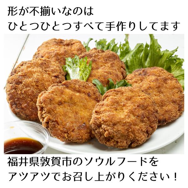 小判型のハンバーグを細かいパン粉をつけて油で揚げて、特製の甘辛いたれにつけたものです。